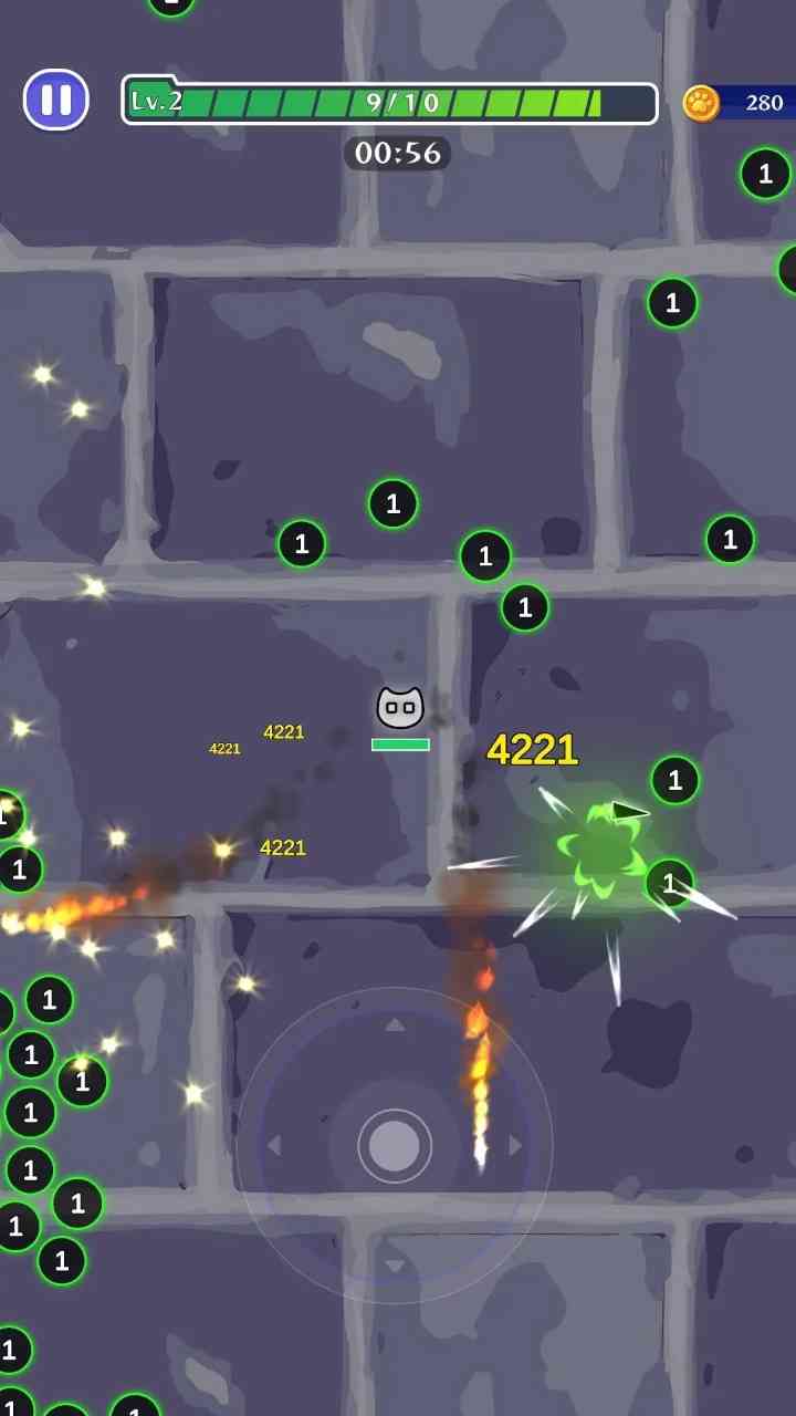 戳到痛处了。 二人制作能有这种美术品质已经很不错了画风有点接近消灭病毒。角色造型使用了非常可爱的猫形象,战斗中只有一个圆圆的头像,与周围圆圈+数字的敌人形成了鲜明的对比。视觉对比非常令人印象深刻。