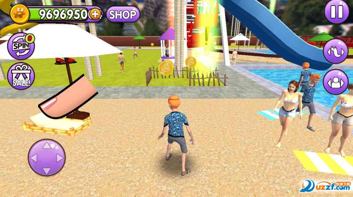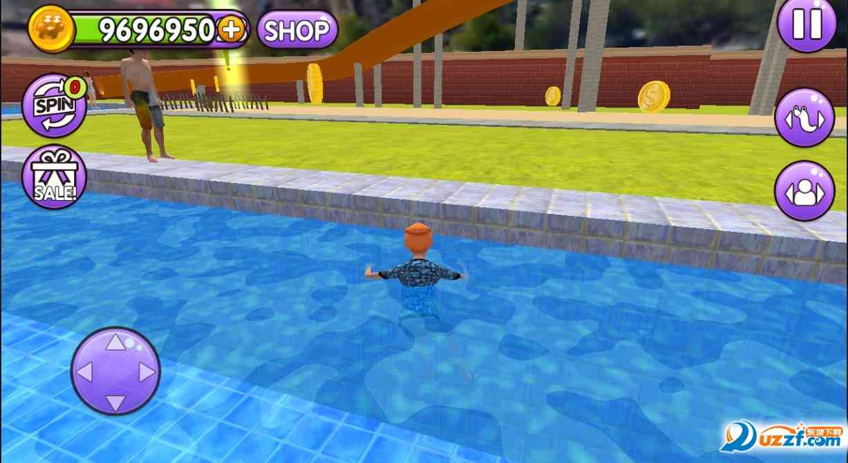 最终的最终。 2、你可以在游戏的乐园里随便行走,可以看遍游戏里面的每一个场景,也可以更换自己喜欢的角色,购买酷炫的游泳圈;