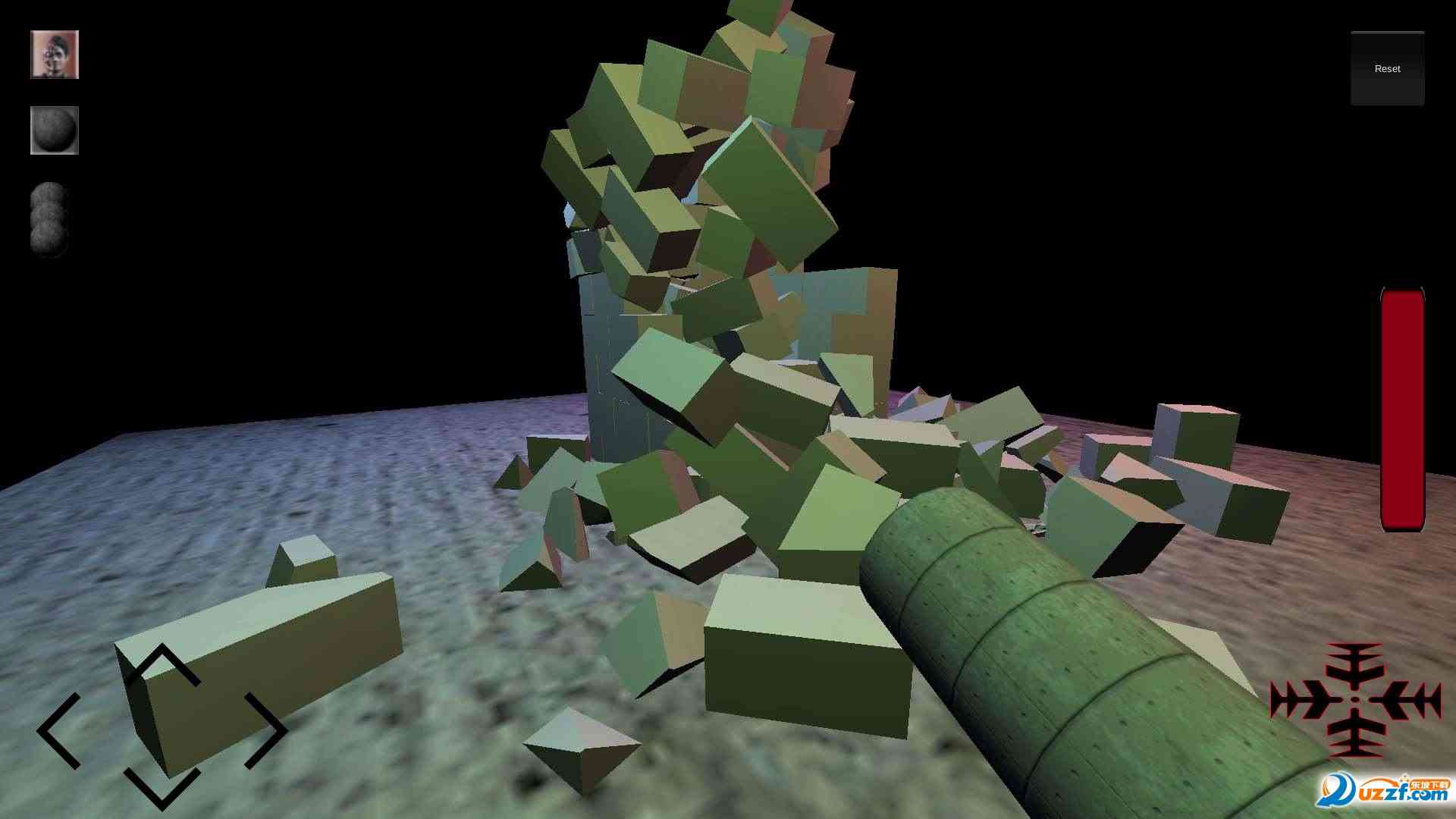 想体验一下破坏的快感吗?这款游戏专为那些内心躁动的玩家设计。游戏全部采用3D建模,动态的天空效果,玩家将操控一台大炮,射击面前的一堆搭建好的建筑。游戏拥有闯关模式和自由模式,在自由模式中,你可以随意开炮,蓄力、连发等发射模式应有尽有。不仅如此,你还可以射击建筑中的人物,享受无尽的破坏乐趣。