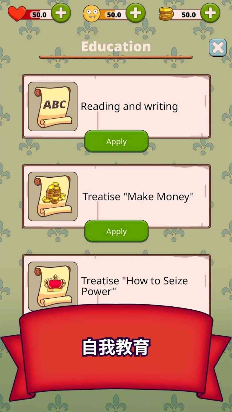 您的第一笔现金将足以满足您的基本需求:食物、 家庭、教育、衣服、住房和交通。 选择你的方式,学习,找到新工作, 到位。 工作并改善你的生活。 积累资本并用它来增加你的财富。 玩幻想模拟器,成为闲置国王并获得你想要的一切!