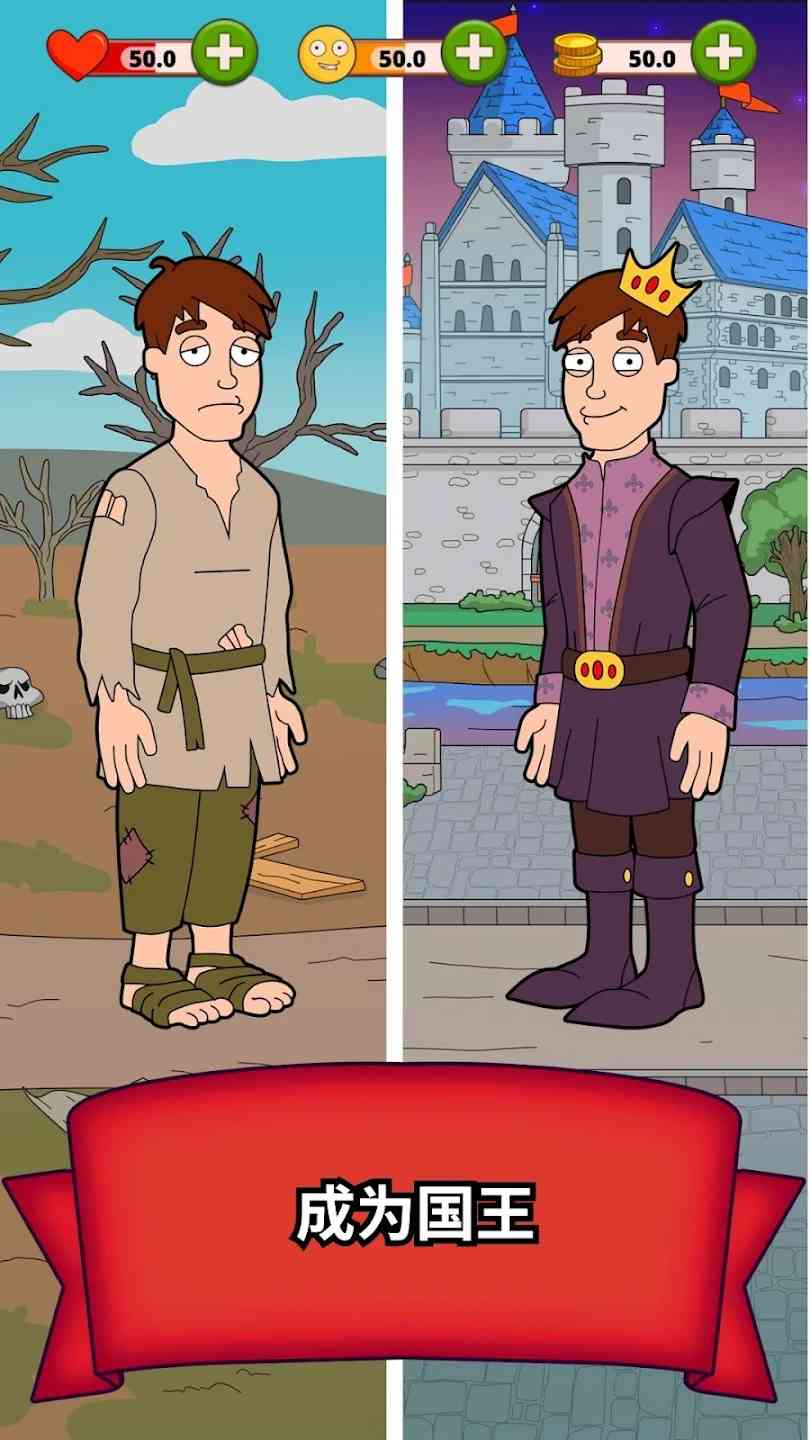 从一个流浪汉变成一个有钱的闲人! 玩奇幻模拟器游戏,白手起家! 掌控虚拟贫穷乞丐的命运:组建家庭并成为中世纪最富有的百万富翁。 您准备好开始从无家可归者到国王的旅程并书写自己的成功故事了吗? 生活模拟器游戏正在等你! 现在就玩《幻想之王:生活模拟器》吧,原来小丑是我。!