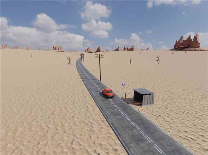 这是一个在沙漠中公路旅行的游戏,它的道路是随机生成的并且几乎没有尽头。 重点是自由、驾驶、探索和沉浸。 它具有最少的汽车维护和生存元素,体验感拉满。。