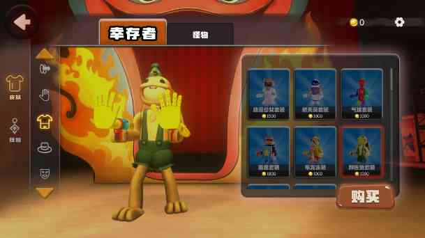 2、 游戏商店中有很多幸存者皮肤与怪物皮肤购买,都很便宜,玩几盘就能买了,加油!。