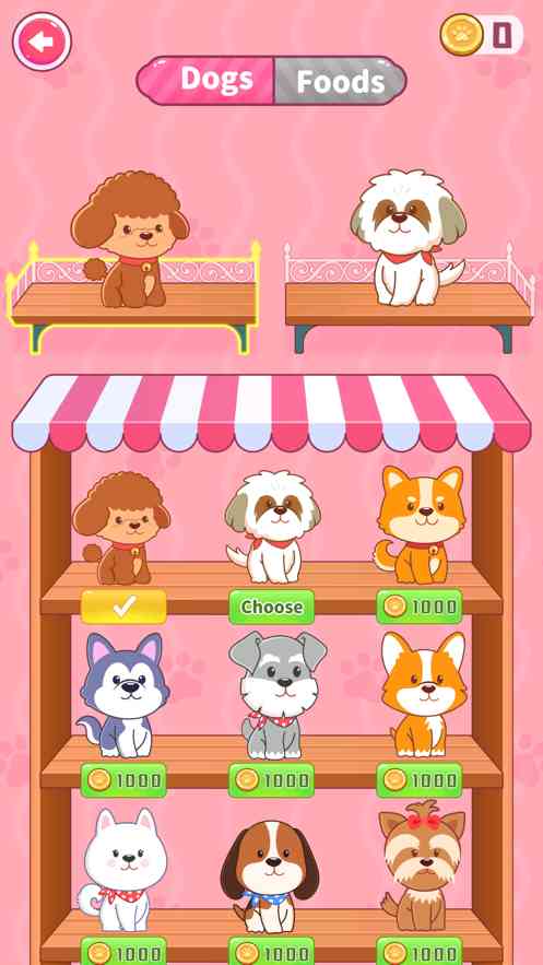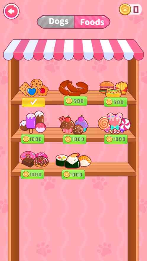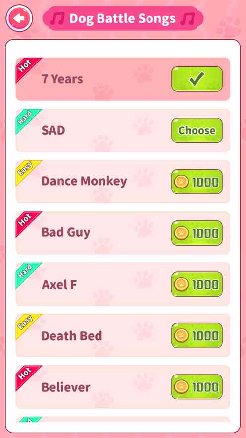 选择音乐挑战, 赢取更多金币,来挑选你喜欢的狗狗和食物吧~