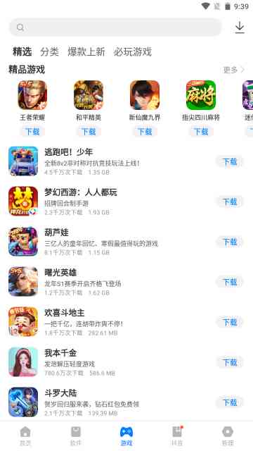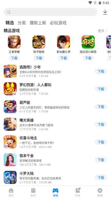 1、拥有海量游戏资源,各种分类的这里都有,手机自带应用商城中有的、没有的,都可以在这里下载到。