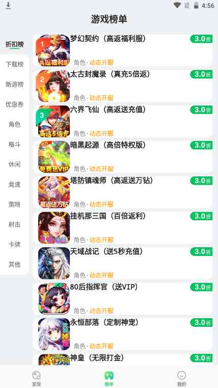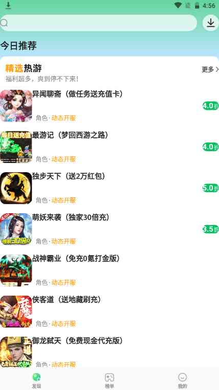 456变态游戏盒子是一款拥有丰富游戏资源的手机游戏平台。这里每天都有最新最热的手游推送,让你第一时间玩到好玩的bt游戏。你还可以在这里找到志同道合的小伙伴一起玩游戏哦!