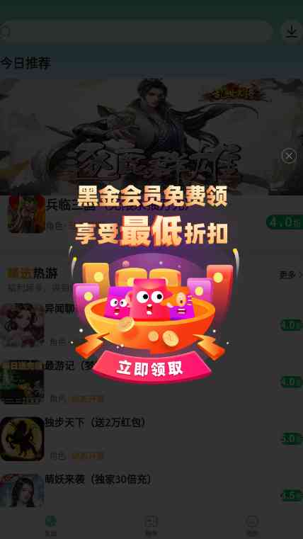 一款优秀的游戏app往往伴因为多个版本。目前网上有两种456游戏盒子app,本页面都提供给大家。好玩的折扣游戏平台, 单机游戏、BT游戏、 换个思路。 手机网友等一应俱全,还有全网最低折扣礼包等你领取,最新最热的游戏这里全部都有,大量的免费游戏资源等你来领取,感兴趣的朋友快来。