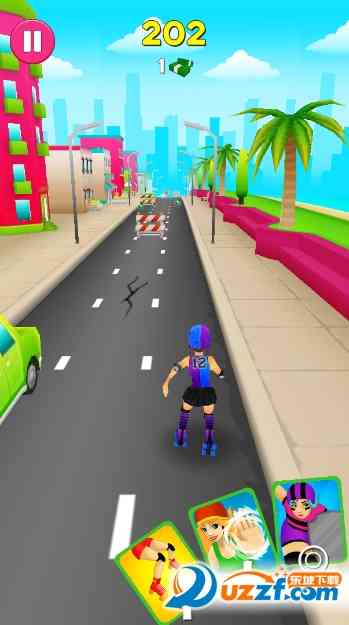 转轮碰撞Roller Crash是一款跑酷类型的手游, 一个穿着滑轮鞋的女孩在道路上滑行,控制女孩的方向,不要让女孩碰到障碍物。