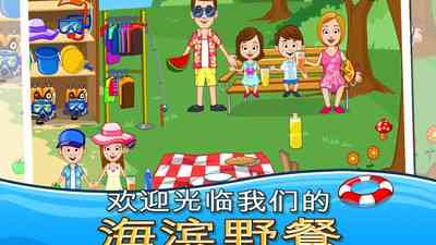 造起来。 野餐其乐无穷,在海滩上野餐时尤其有趣。在沙滩上放松嬉戏,探索海底世界或只需坐下即可享用野炊美餐。My-Town:海滨野餐有众多娱乐活动和趣事待你探索。