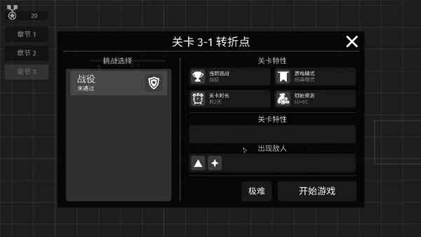 1、 打开极简塔防steam手机版,点击开始游戏, 别担心... 选择游戏难度,现有普通、困难、极难三张难度;