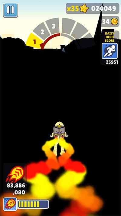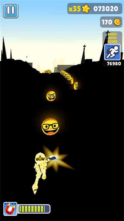 4、 如果拾取到喷气背包,那就太好了不用再继续抹黑跑酷,而是直接在空中飞行。