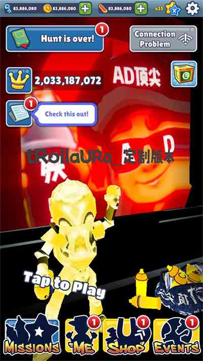 调整一下。 1、 殃毁CT定制版本,高仿国际服的版本,体验外网地铁跑酷,全角色解锁,所有滑板任意切换。