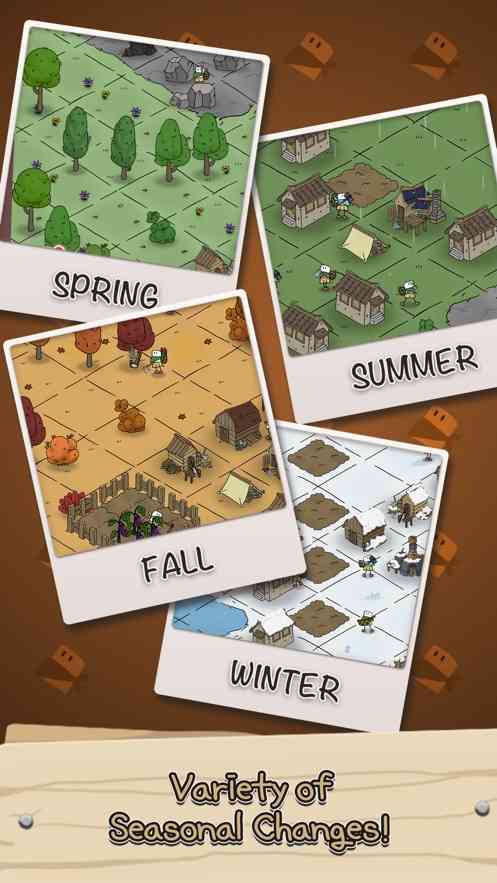 嚯... 世界上的季节各有特点,让玩家的生存过程更加繁荣和有趣。根据季节的不同,植被或树木类型会发生变化,使村庄的周围环境变得更加复杂。幸运的是玩家可以支持整个村庄或建造更多功能来帮助每个居民度过任何季节,甚至是最严酷的冬天。