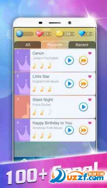 8、您可以保存您最喜欢的钢琴歌曲。轻松访问您最喜欢的歌曲和最近播放的歌曲。