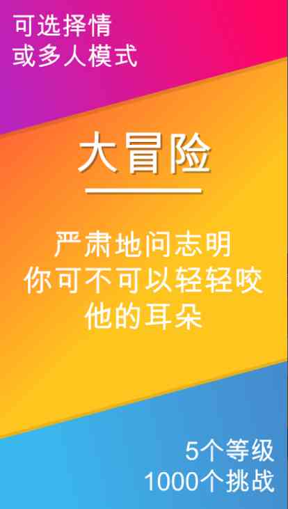 适合情侣或者朋友一起玩的情趣游戏, 1000多个挑战等你来玩!面对多个等级的真心话和大冒险, 百感交集。 你会选择怡情、温和还是热辣、刺激和极限呢?