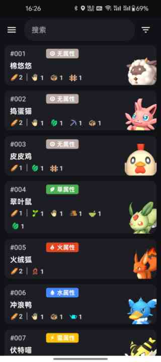 深得我心。 1、 列出所有伙伴的资讯,包括元素、栖息地、伙伴技能、繁殖等,列出所有道具资讯,包括它们的来源。