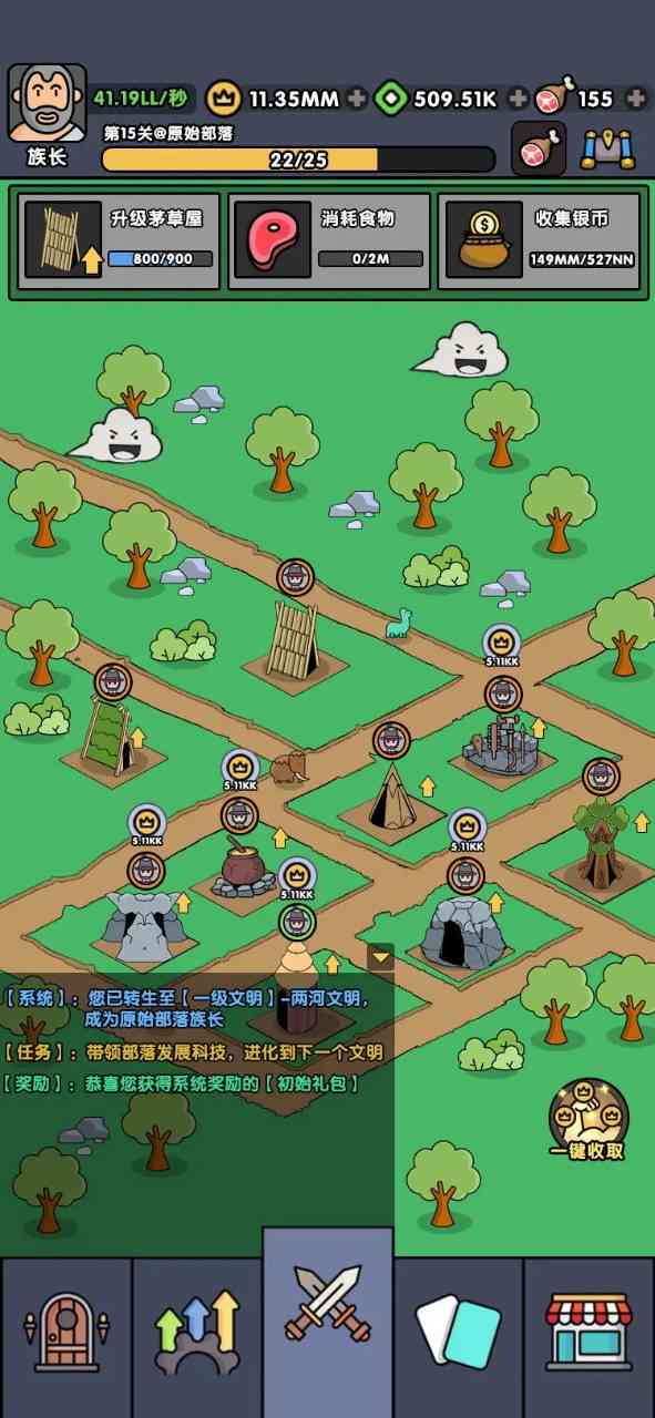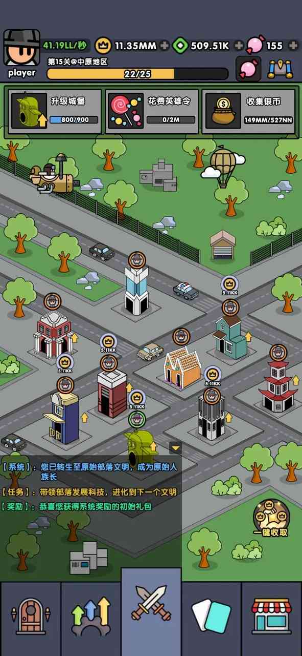 2.建造篇:通过完成任务提升建造等级,进入高等文明。战斗任务是最难且最容易卡关的, ICU你。 但可以通过战斗解锁建筑和完成其他任务来解决。