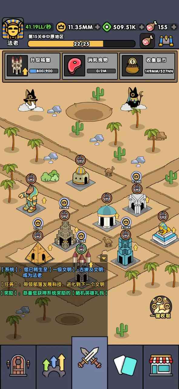 《神级文明进化系统》是一款以文明进化为主题的手游, 玩家将扮演一名原始部落族长,从一级文明的两河文明开始,通过科技发展、资源收集和建筑建设,一步步将文明进化至神级文明。