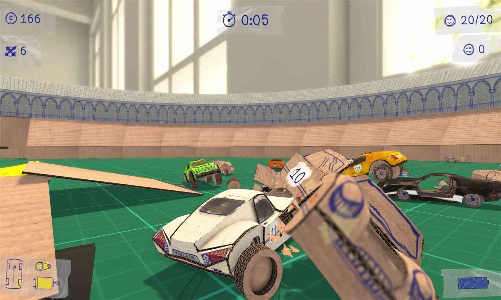 一言难尽。 《概念破坏》是一款驾驶微型纸板车,并且和其他纸板车碰撞在一起摧毁他们获得积分的游戏!玩家需要从不同的游戏风格里选择出最适合你的那个。如果想要杀出一条血路后获得量产, 就选择锦标赛模式,也可以选择生存模式看看你可以在致命的纸板车浪潮中生存多久!通过玩游戏赚取积分来解锁新车。