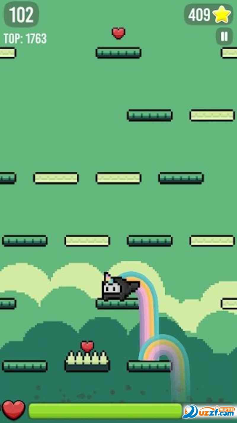 游戏玩法简单直接, 只需点击屏幕,控制小动物不断向上跳跃。在跳跃的过程中,要吞噬途中的爱心,躲避障碍,这不仅考验你的反应能力,还考验你的策略,在理。。