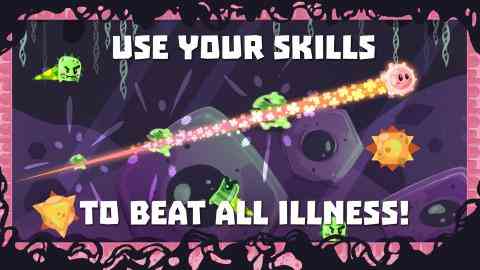 通过滑动屏幕,击破各种病毒,细胞冲刺的距离不是很长,抓住时机消灭它们吧!!