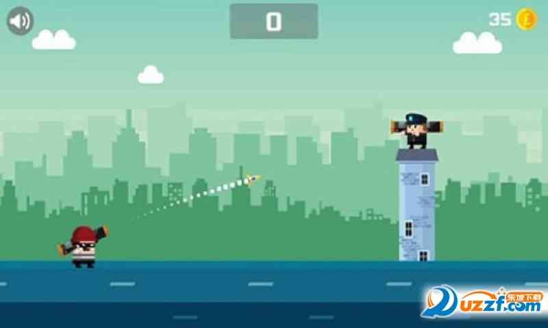 游戏采用彩色方块画风, 玩家可以解锁众多不同的匪徒形象,你需要用手中的火箭筒尽可能的消灭追击的捕快, 盘它... 一边也要避免被捕快的火箭击中,无尽的关卡等你来挑战!