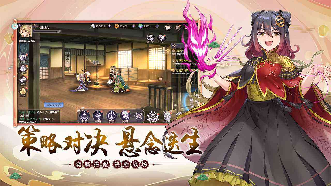 如果抛开其劣质的玩法不谈, 游戏的美术设计也算不上多好,每个角色的服化道确实都打出了差异化,没有通过简单的换脸进行敷衍,在武将界面看上去非常养眼,但也仅局限于武将界面了主要原因是实际进入地图之后建模就会被缩小,很多细节都会消失,所以看起来就大打折扣,而且游戏中的场景看上去更像是贴图,没什么精致感,整ui排版虽然布局的井井有条,没有遮挡太多的画面但却没有在颜色上加以区分,像是比较常见的按钮应该以不同的形状或者颜色来让它更加显眼,而不是全部套用同一个模版,这样看起来只会显得平平无奇,非要挑出一个优点来讲的话,就是人物都采用了日语配音,必须要承认的是在这种二次元的题材里日语配听起来的确要更加贴切,不会有违和感,还能够与人物的长相、性格特征所搭配,将人设牢牢的印在玩家的心目之中。