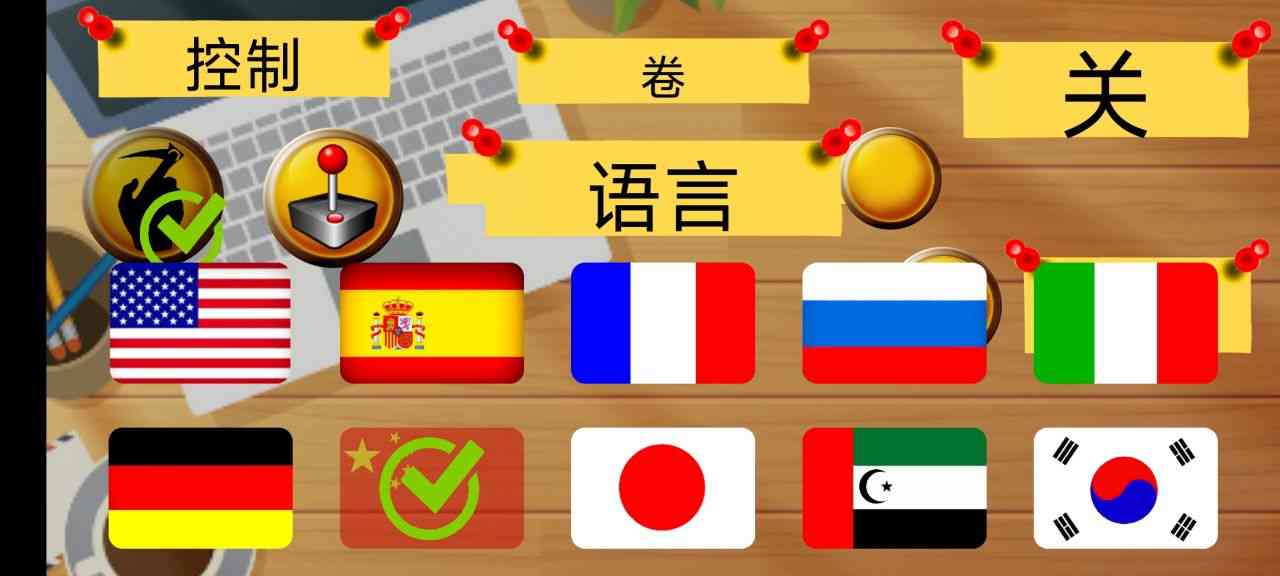 1、 第一次打开游戏的首页,点击stetting设置,选择中国国旗就可以了。