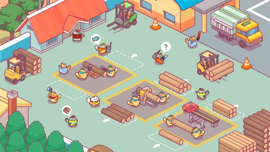 看着工作中的可爱猫咪,感受轻松的氛围,并稳步成为您梦寐以求的木材大亨!快来加入我们