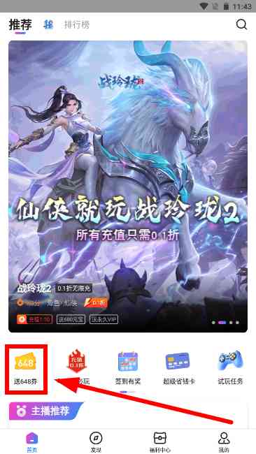 1、 先说说在本页面下载安装该软甲,然后进入软件登录成功,再首页点击送648券。