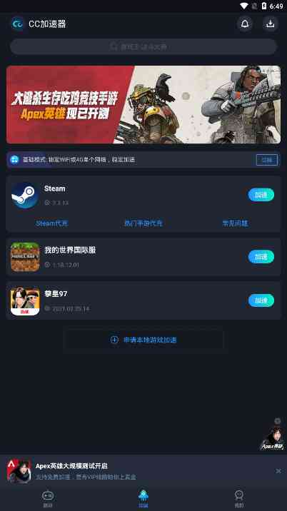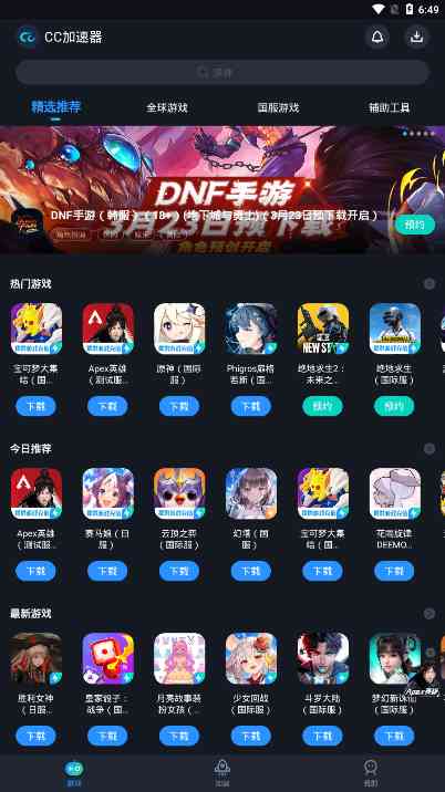 CC加速器是你完全免费加速游戏的专用工具。在网上可以选择各种辅助软件, 会为你打造更清晰的游戏界面为你节省了很多功能,也让你完善了很多游戏功能等实用操作,让你在申请后更快地查询操作效果和识别游戏,操作效率也很快,勇敢一点...。