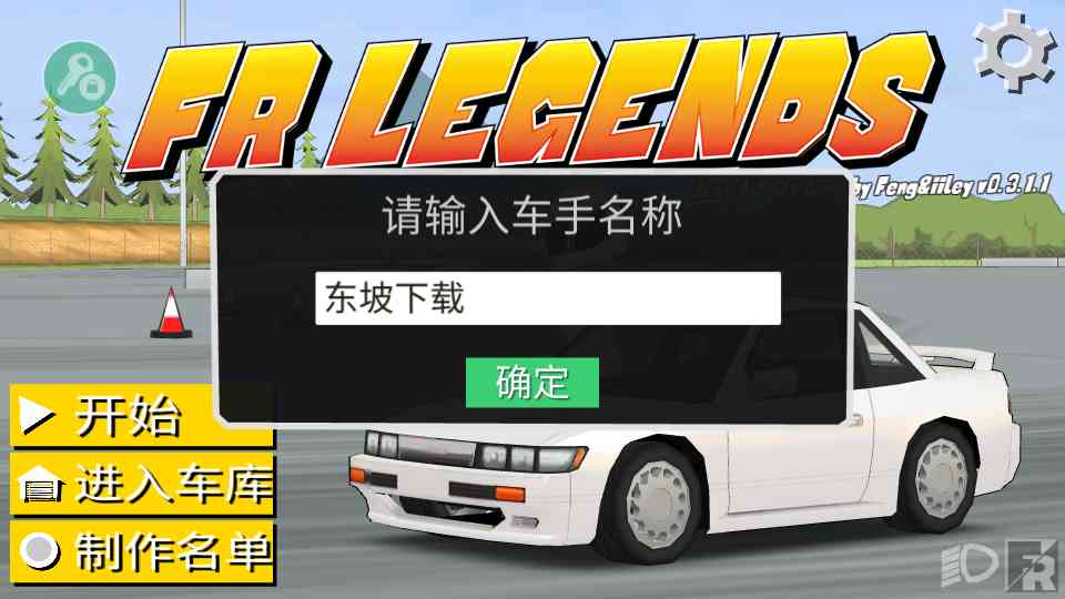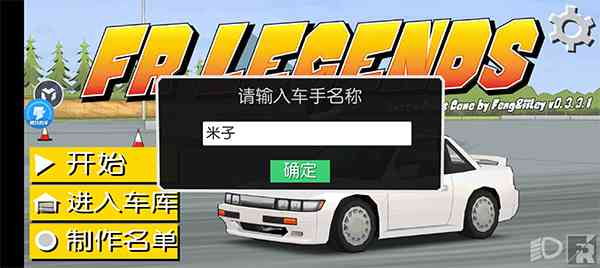 1、先说说打开fr漂移传奇游戏,输入一个车手名字。