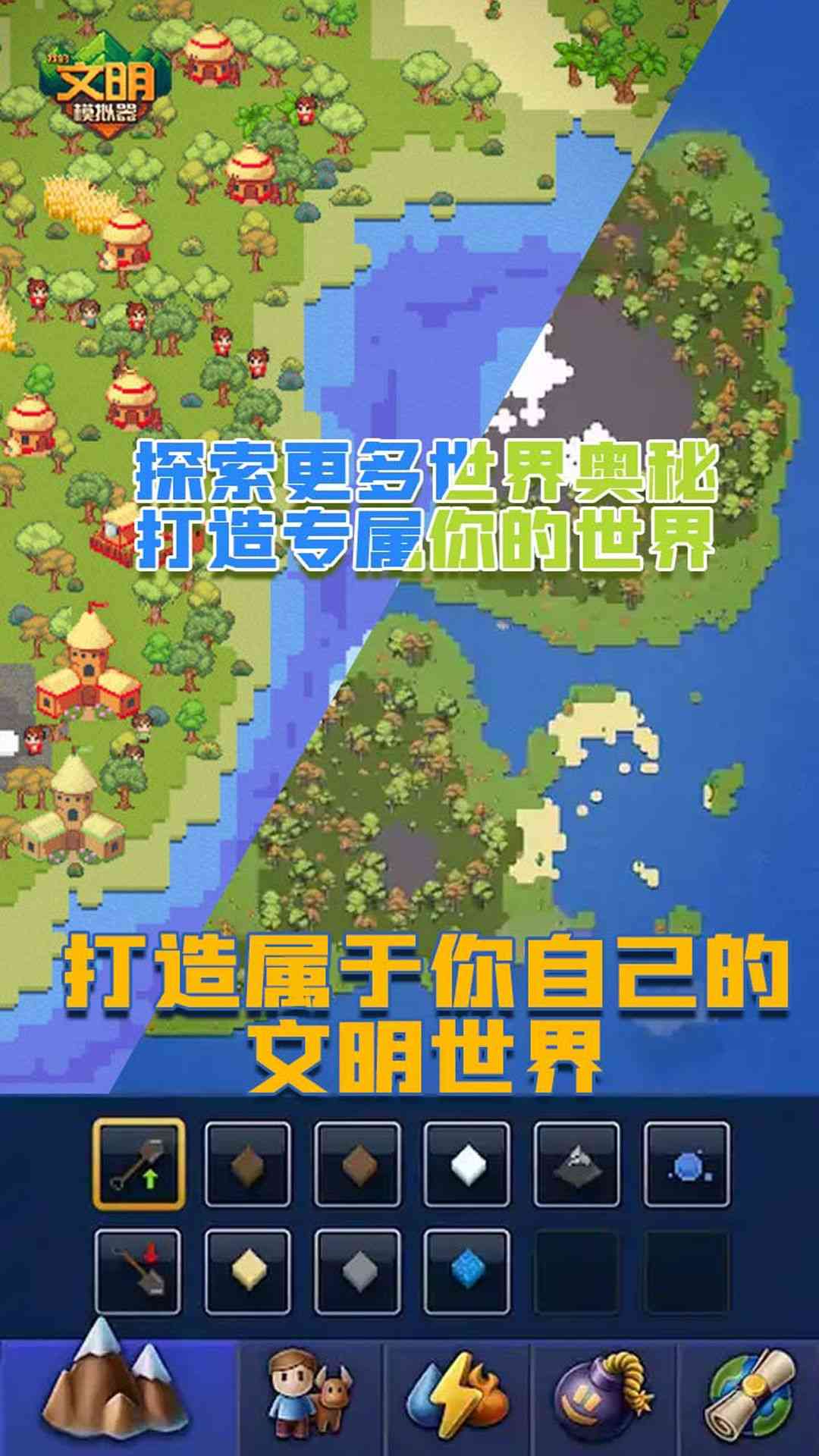 让我们一起... 不知道有没有小伙伴玩过沙盒上帝模拟器的, 这款我的文明模拟器其实是差不多的,都是模拟创世主来创造自己的世界,慢慢发展,快速进程的游戏,让你更加了解到生命的进程以及智慧的演化。