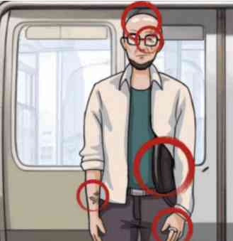 1、 文字找茬大师地铁坏蛋,先说说查看第一个监控画面点击手机、刀疤、公文包、手臂纹身、项链、光头