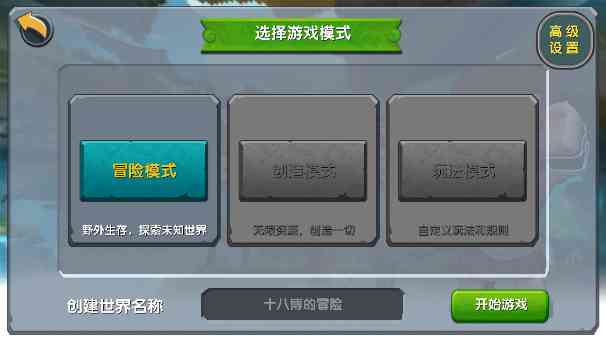 4.创造新世界有三个模式可以选择, 分别是冒险模式,创造模式,以及玩法模式。