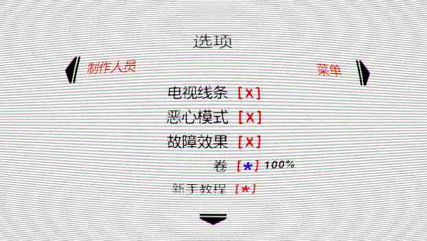 你可以将这款游戏的玩法看做是小时候的“大西瓜,小西瓜”游戏的升级版。不过想要完成成就可没有那么容易。游戏没有简单模式,不过你可以通过更改设置来提高难度。设置中总共有三种效果可以选择, 有啥说啥... 点出×代表该项设置将实现。电视线条就是截图中的横线,恶心模式随意样式的闪烁,故障效果为间歇式的花屏与图像抽动。因为你的连击数的提升,恶心模式与故障效果会更有力的保护你的眼睛。