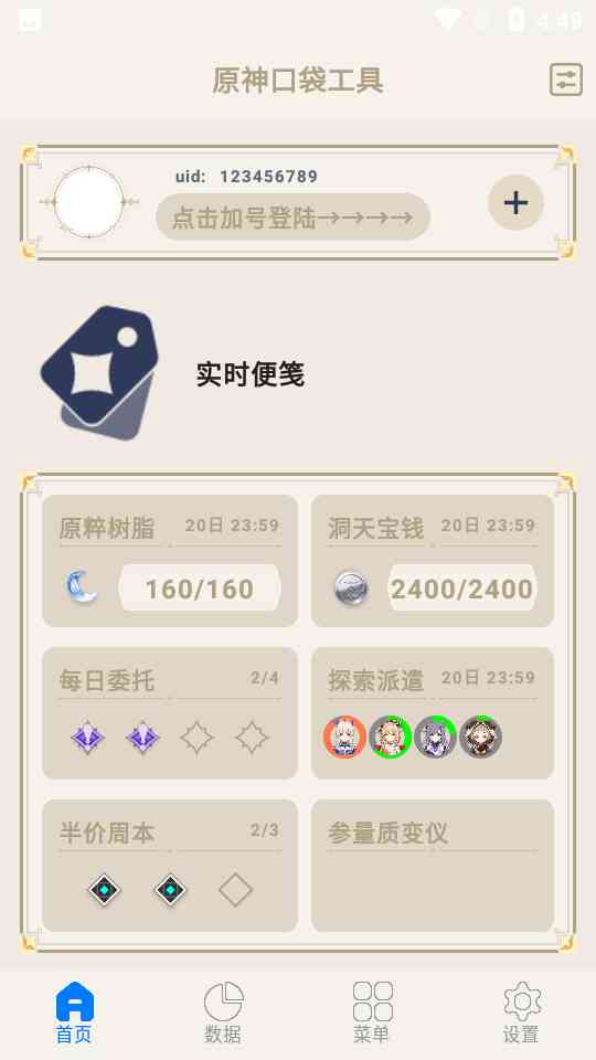 原神口袋工具app专为原神玩家提供的一个手机便捷工具, 在这里玩家可以通过软件查看自己的任务完成情况,还有树脂和洞天宝钱恢复情况,角色数据在这里十分详细,有需要的小伙伴快来下载吧,掉链子。!