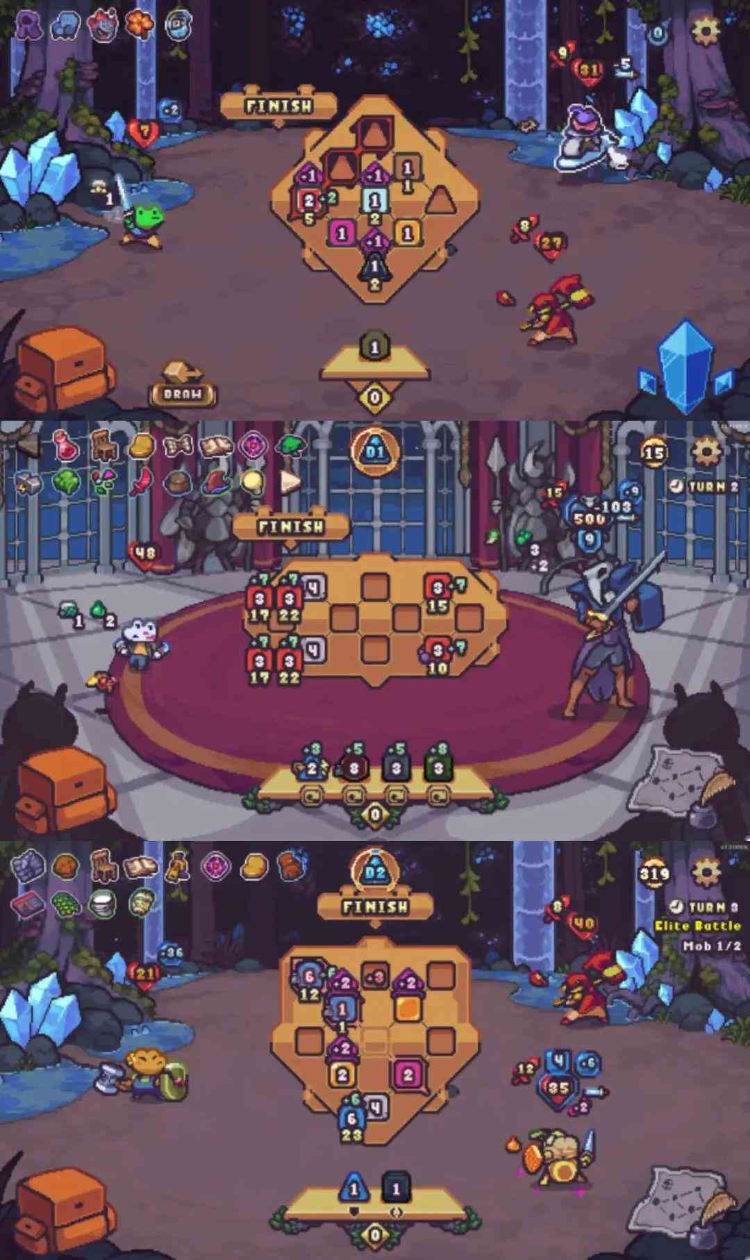 游戏中设计了许多类似的机制,由此对玩家摆放骰子给出了一定的限制。也正是主要原因是敌人能够对棋盘造成影响,带来的交互感更为强烈,战局的变化也更加多样。