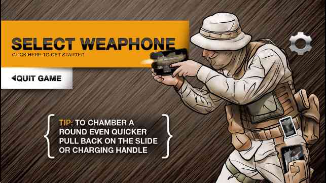 3、 进入游戏后玩家只需点击 “SELECT WEAPHONE” 按钮, 切记... 即可进入挑选枪械的界面。