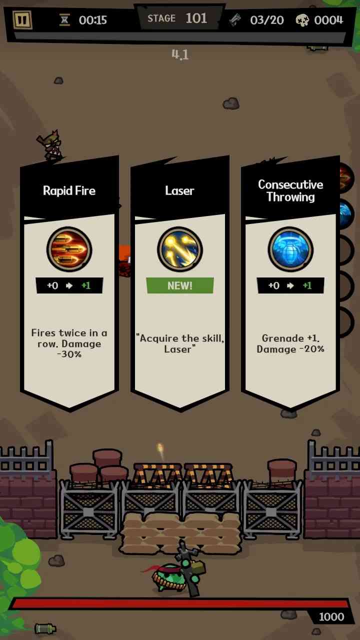武器强化:开始升级武器,提高武器伤害和攻击范围,以应对越来越多的僵尸。
