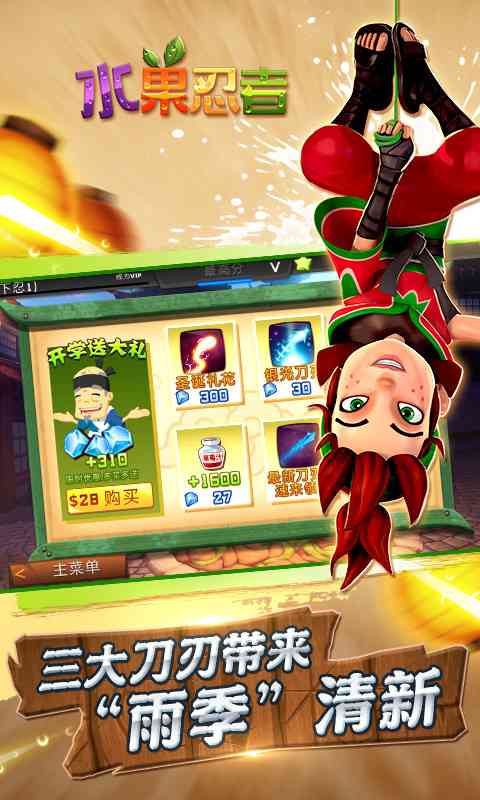 切水果全新升级!可爱萌系的Q版画风,炫丽的烟花绽放夜空。精心编制的五大场景上百关卡,更有樱桃小鸟、捣蛋大胖鸟、神秘坚果等特色玩法让你预罢不能。在神奇的冰冻减速果实、 分数翻倍果实、喷发果实、引爆果实和炸弹防护盾五大强力道具的辅助下让你享受疯狂切割的快感,实力强劲的你直接免费通关不再是梦!