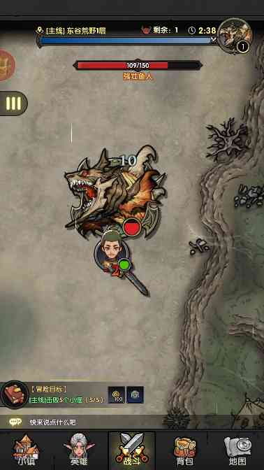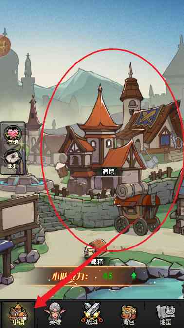 不如... 7、 然后就正式进入到了游戏战斗界面如图所示,下饭是一些功能按钮,可以切换小镇,英雄,可以查看背包,地图。