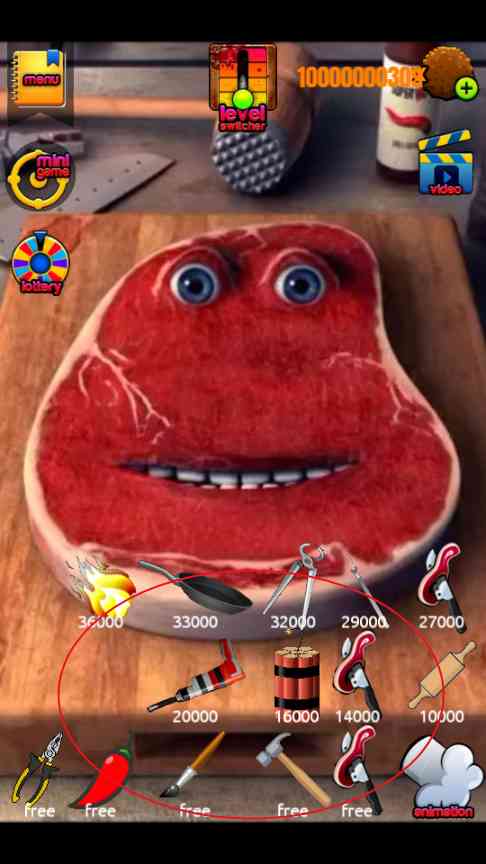 没耳听。 总共有14种工具可以折磨牛排并解锁新的动画。