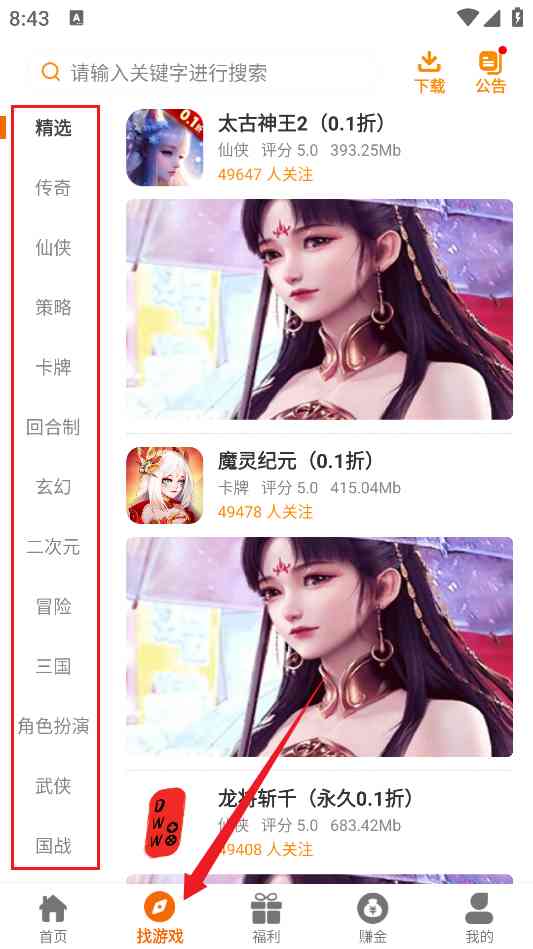 2、快速筛选自己喜欢的类型,拥有全面的类型,随时的进行游玩。