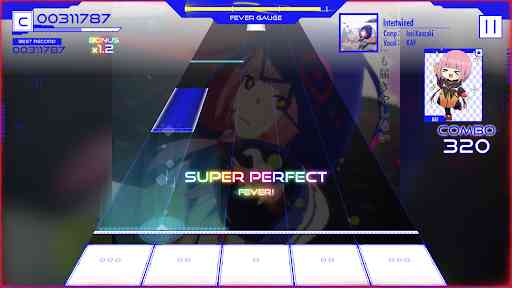 当判定块下落到判定线按下时会有对应颜色的光效动态反馈, 并且不同的判定块反馈的音效都是不同的, 一言难尽。 并且不同轨道下的音效反馈也是不同。