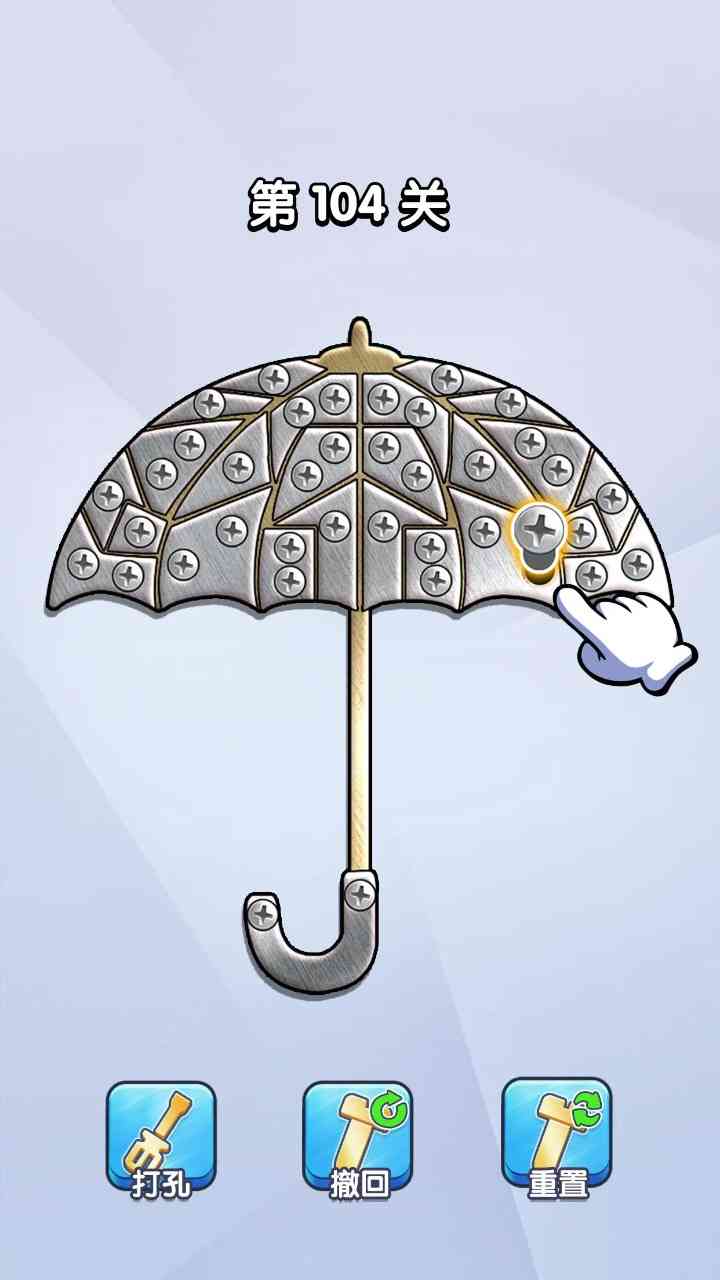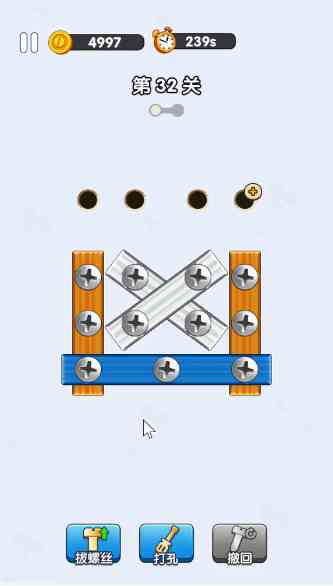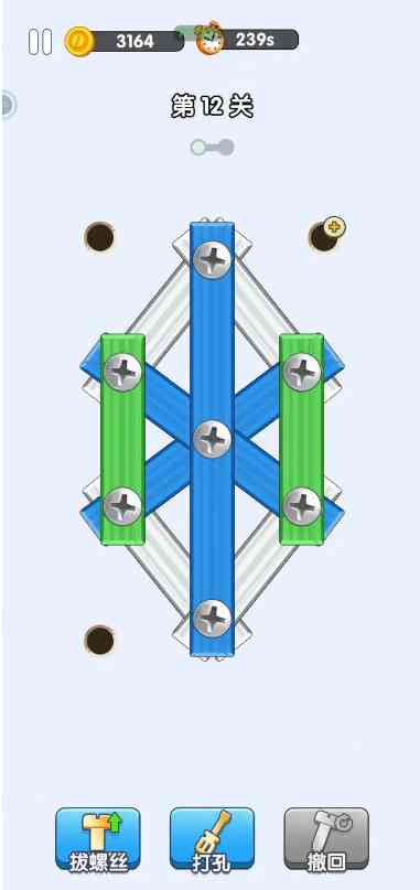 3、按照关卡的要求,点击下方的把螺丝或者是打孔完成关卡,遇到不会的可以撤回或者是看广告跳过。
