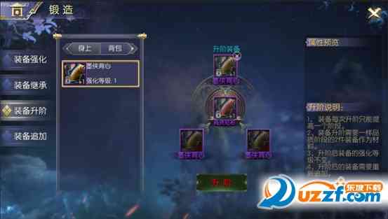 冲鸭! 装备升阶只需找到与自己相同阶段、部位、品质的2件装备当作升级材料用来升阶即可;