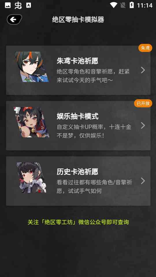事实上... 绝区零工坊是玩家组织自己创建的一个专为《绝区零》游戏玩家们设计的可以自由查询游戏数据, 更新最新游戏资讯以及模拟游戏抽卡,以及欧非的分析等等功能的小工具,大家可以关注官方的公众号获取更多的功能信息,站给大家带来的是最新版本,功能更多更齐全!
