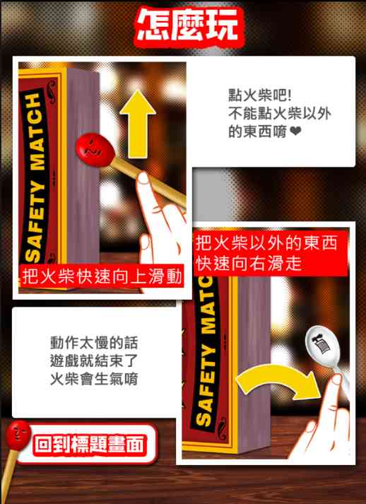 一支番仔火是一款非常搞笑好玩的休闲游戏, 游戏非常考验反应能力,要迅速判断物品是不是火柴,绝不能掉以轻心,集中精神,你会走的更远,赶紧来闯关吧,开倒车。!