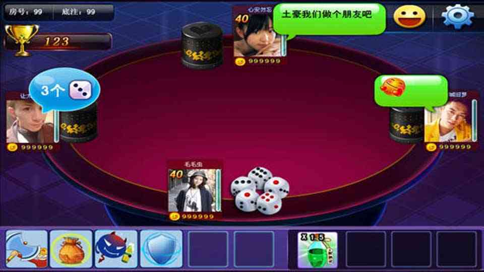 换句话说... 夜店大话王以酒吧大话骰玩法为基础, 玩家扮演一个夜店潮人,通过练习博骰技术,升级卡片等级与卡片组合技术,打败对手获得资源与荣誉点,在夜店大话王中与附近玩家交友休闲娱乐,与全球顶级玩家同台PK,持续扩大自己的影响力。